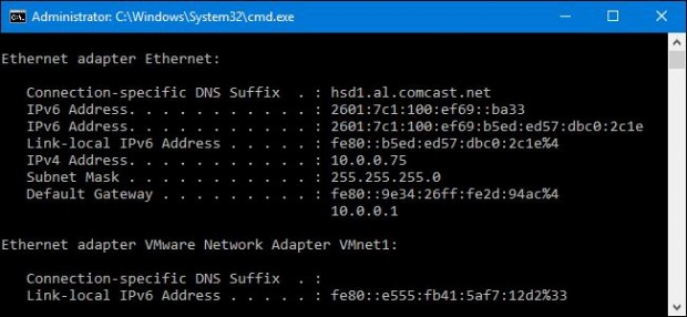 - A list of network details will appear. Look for the “Default Gateway”—the number next to it is your router IP address.