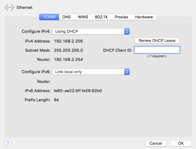 | macOS | System Preferences | TCP/IP Tab | Router Field |