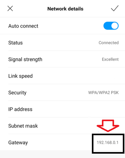 | Android | Wi-Fi Settings | Network Details | Gateway/Router |