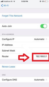 | iOS | Wi-Fi Settings | Tap on Network | Router |